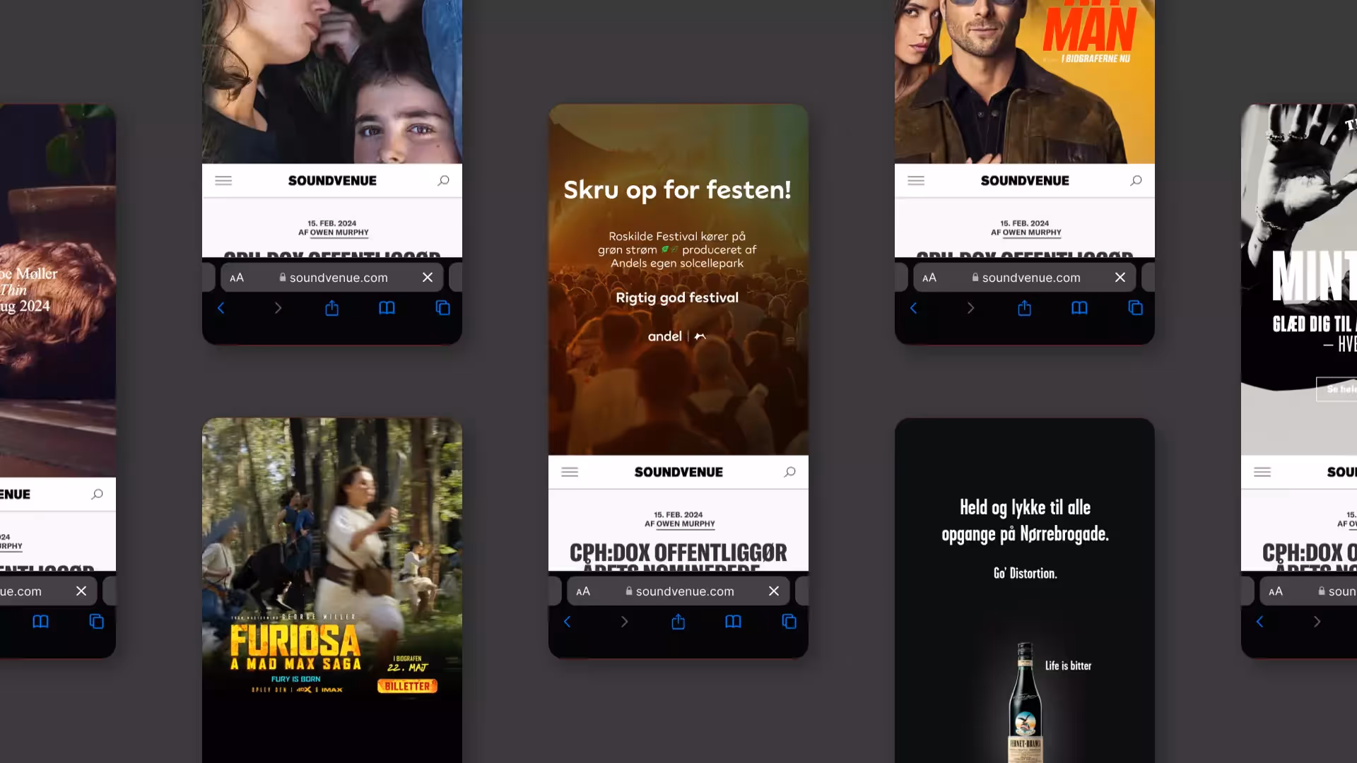 We’re setting the standard for digital advertising with our diverse range of display formats. Each format is crafted to resonate with our audience, ensuring your message integrates effortlessly within Denmark’s leading cultural landscape. Explore our solutions to see how your brand can connect with our core audience of 20-40-year-olds, delivering impactful and engaging campaigns in the Soundvenue universe.